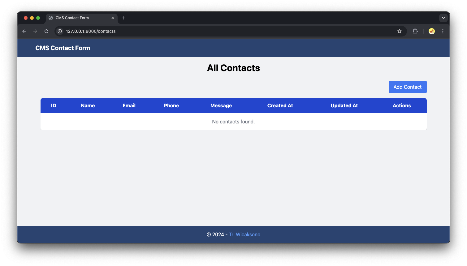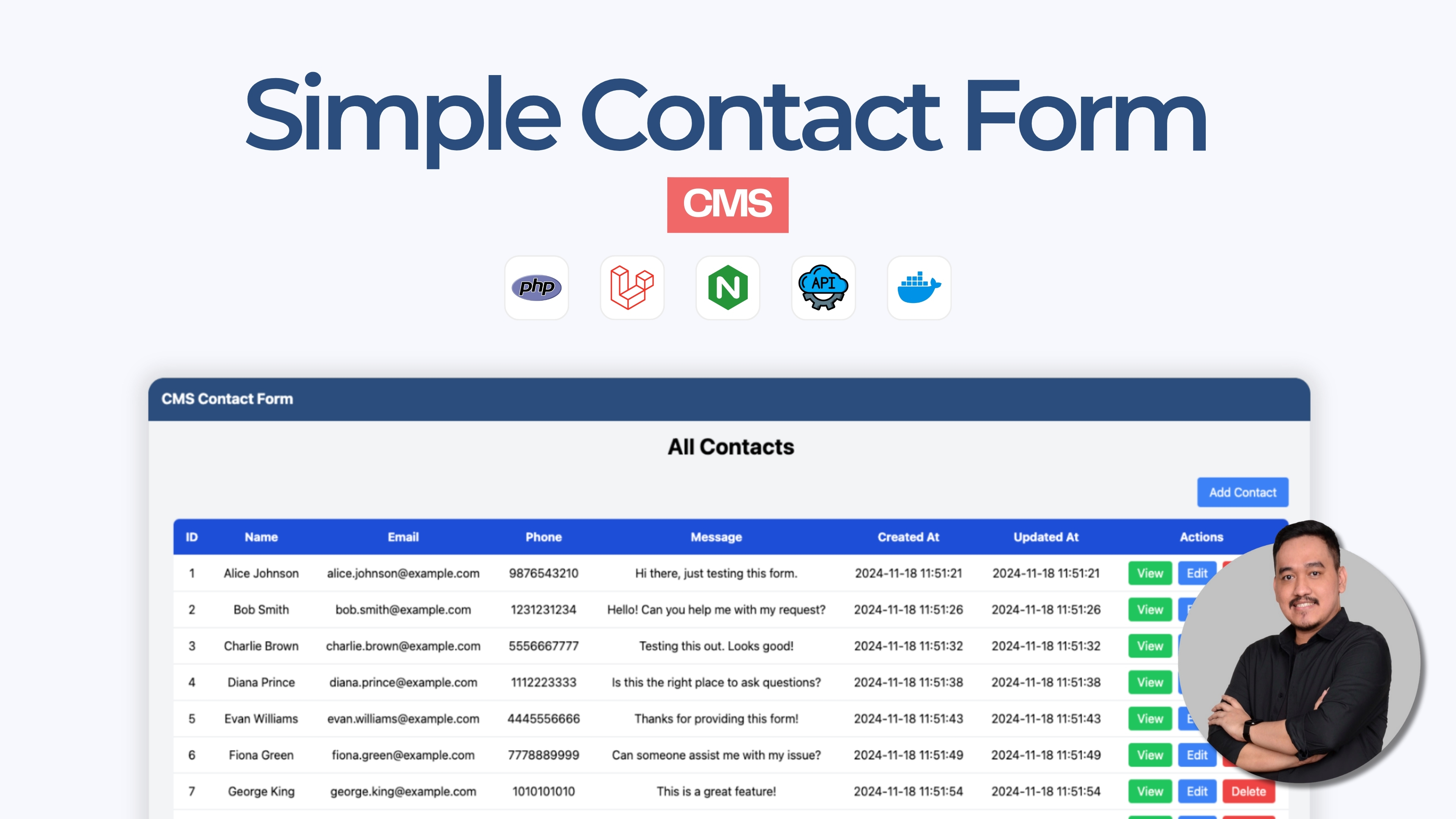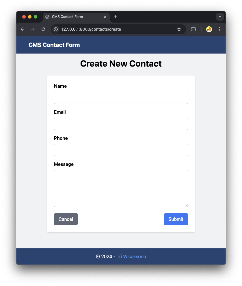 Developing a Simple Contact Form CMS (Content Management System) Using Laravel, Integrating API, and Docker